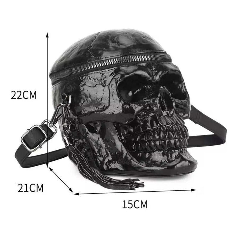 Bolsa Skull Calavera 3d Diseño Negro Brilloso Negro Lisa Metal